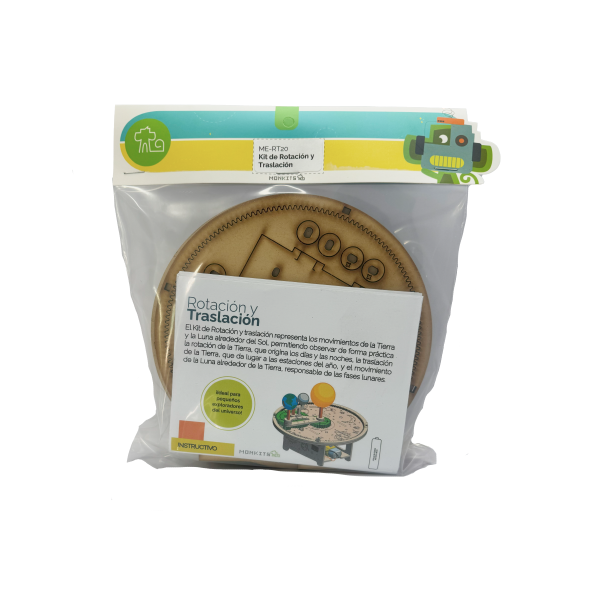 Kit de Rotación y Traslación, modelo didáctico interactivo diseñado para aprender de manera divertida cómo funcionan los movimientos de la Tierra, Luna y Sol. Fabricado en MDF, este kit combina mecánica, creatividad y ciencia en un solo producto. No Incluye Baterias 2AA. Presentación en bolsa.