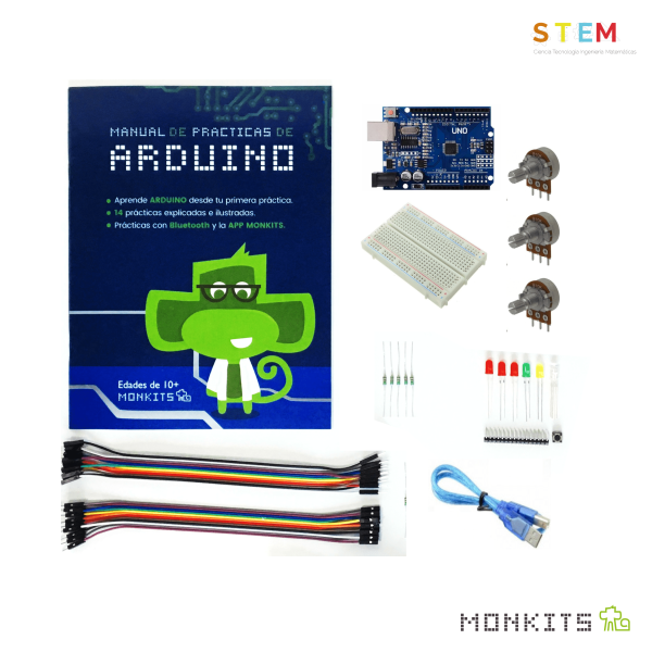Monkibot es un juguete educativo con estímulo STEAM que permite al usuario interactuar de forma didáctica y divertida con principios básicos de mecánica y robótica, mediante prácticas que estimulan el desarrollo cognitivo en áreas de pensamiento lógico – matemático, basados en ensambles básicos, programación y creación de propios proyectos.