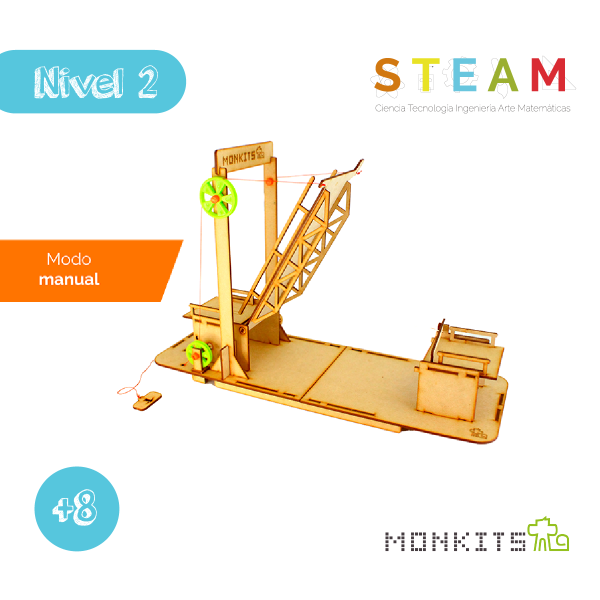 Kit didáctico para armar tu puente levadizo de MDF, aplicando el aprendizaje STEAM. No incluye caja de plástico (presentación en bolsa), este modo no es electrónico, es manual.