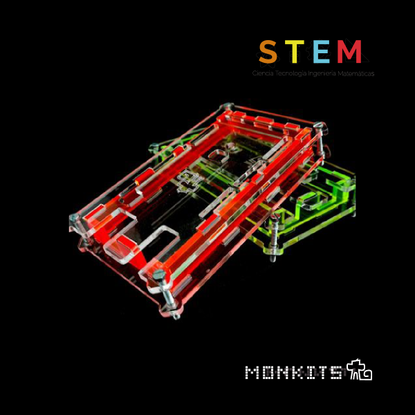 Carcasa para Arduino Mega de acrílico para armar, disponible con laterales de diferente color.